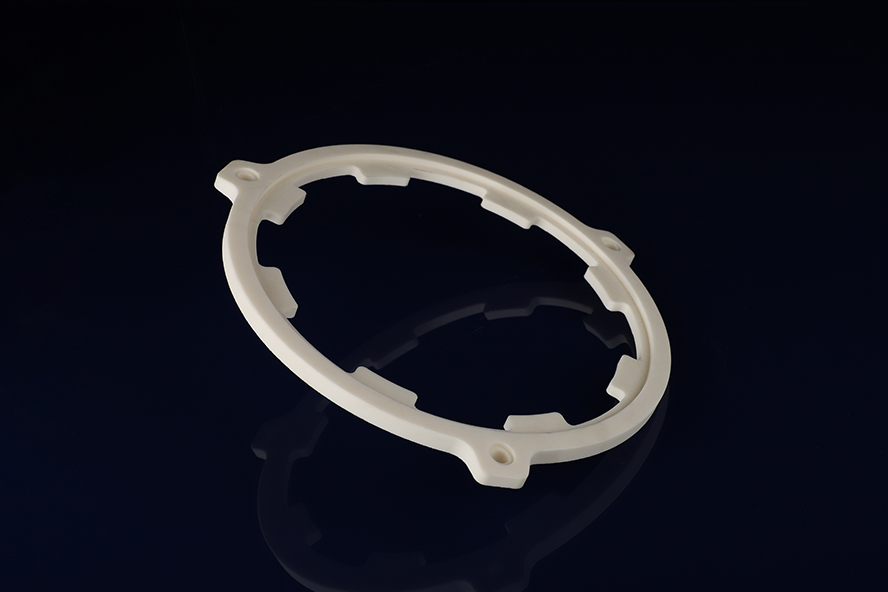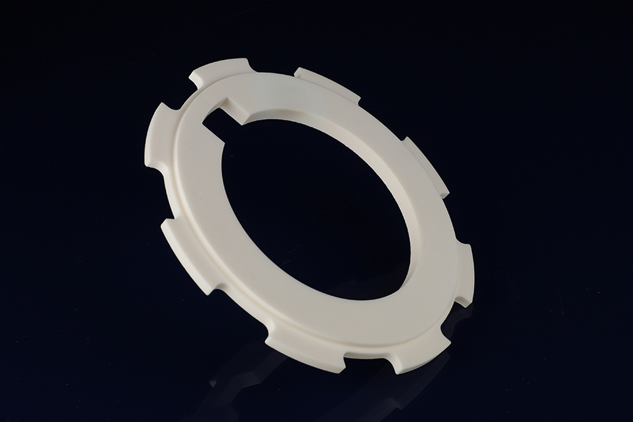 氧化鋁對準(zhǔn)環(huán)與支撐環(huán)是半導(dǎo)體刻蝕、沉積等制程中的關(guān)鍵精密部件,憑借材料本征優(yōu)勢,正在替代金屬與塑料結(jié)構(gòu)。其首要價(jià)值在于超高尺寸穩(wěn)定性:氧化鋁熱膨脹系數(shù)低,且硬度高,經(jīng)精密磨削后圓度可控制在微米級(jí),確保晶圓在升降溫循環(huán)中始終維持精準(zhǔn)同心度,有效抑制邊緣偏差導(dǎo)致的良率損失。其次,氧化鋁具有優(yōu)異的電絕緣與等離子體耐蝕性,擊穿電壓達(dá)20 kV以上,對含氟、含氯高能等離子體表現(xiàn)出極佳的化學(xué)惰性,可在腔體中穩(wěn)定工作上千小時(shí),顯著降低顆粒污染與金屬離子析出風(fēng)險(xiǎn)。其熱導(dǎo)率約30-40 W/m·K,能迅速將工藝熱量均勻散開,避免局部熱斑導(dǎo)致的晶圓翹曲。此外,氧化鋁可通過注塑-燒結(jié)實(shí)現(xiàn)凈成形,后期僅需微量精加工,綜合成本較氮化硅低30%以上,為12英寸乃至更先進(jìn)制程的規(guī)?;瘧?yīng)用提供了經(jīng)濟(jì)可行的路徑。